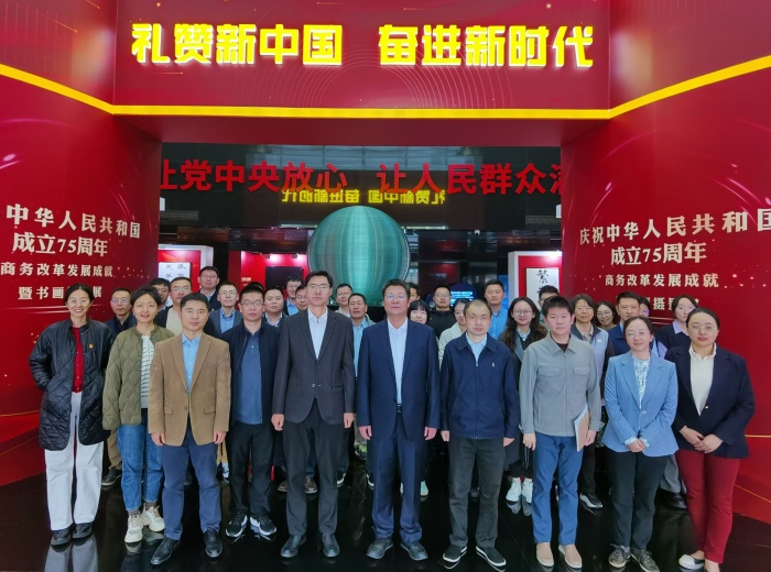 10月25日,消費(fèi)促進(jìn)司黨支部舉行黨日活動(dòng),司長李剛同志帶領(lǐng)全司黨員干部參觀“禮贊新中國 奮進(jìn)新時(shí)代——商務(wù)部慶祝中華人民共和國成立75周年商務(wù)改革發(fā)展成就暨書畫攝影展”。大家認(rèn)真聆聽講解,深刻感悟商務(wù)改革發(fā)展成就。大家表示,堅(jiān)定擁護(hù)“兩個(gè)確立”,堅(jiān)決做到“兩個(gè)維護(hù)”,以釘釘子精神落實(shí)好黨中央決策部署,全力做好市場運(yùn)行和消費(fèi)促進(jìn)各項(xiàng)工作,為推進(jìn)中國式現(xiàn)代化作出積極貢獻(xiàn)。